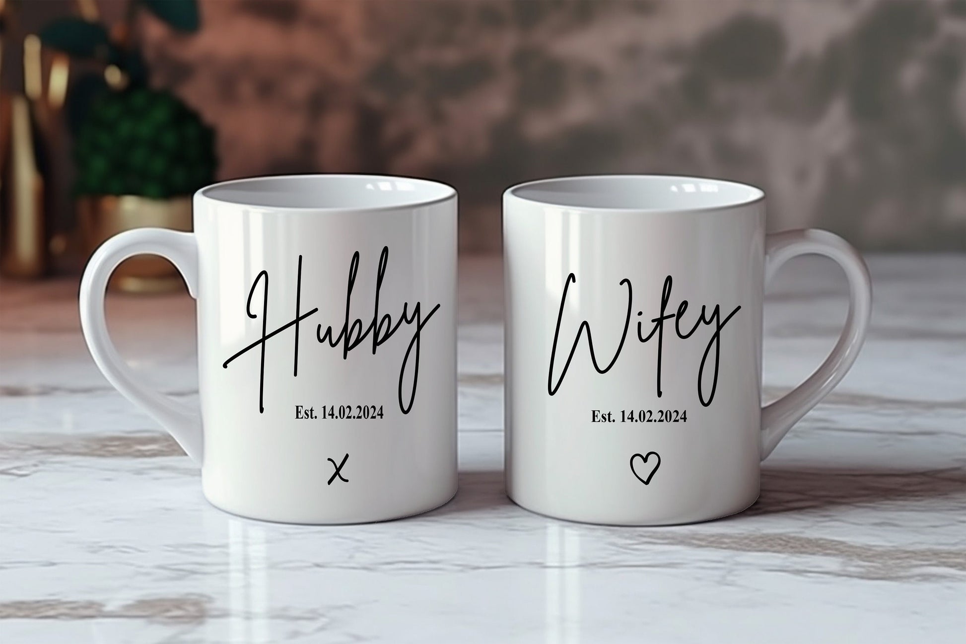Husband and Wife Mugs Personalised Gift for Newlyweds Mr and Mrs Coffee Cups Perfect Wedding Present for Couples, hubby, wifey
