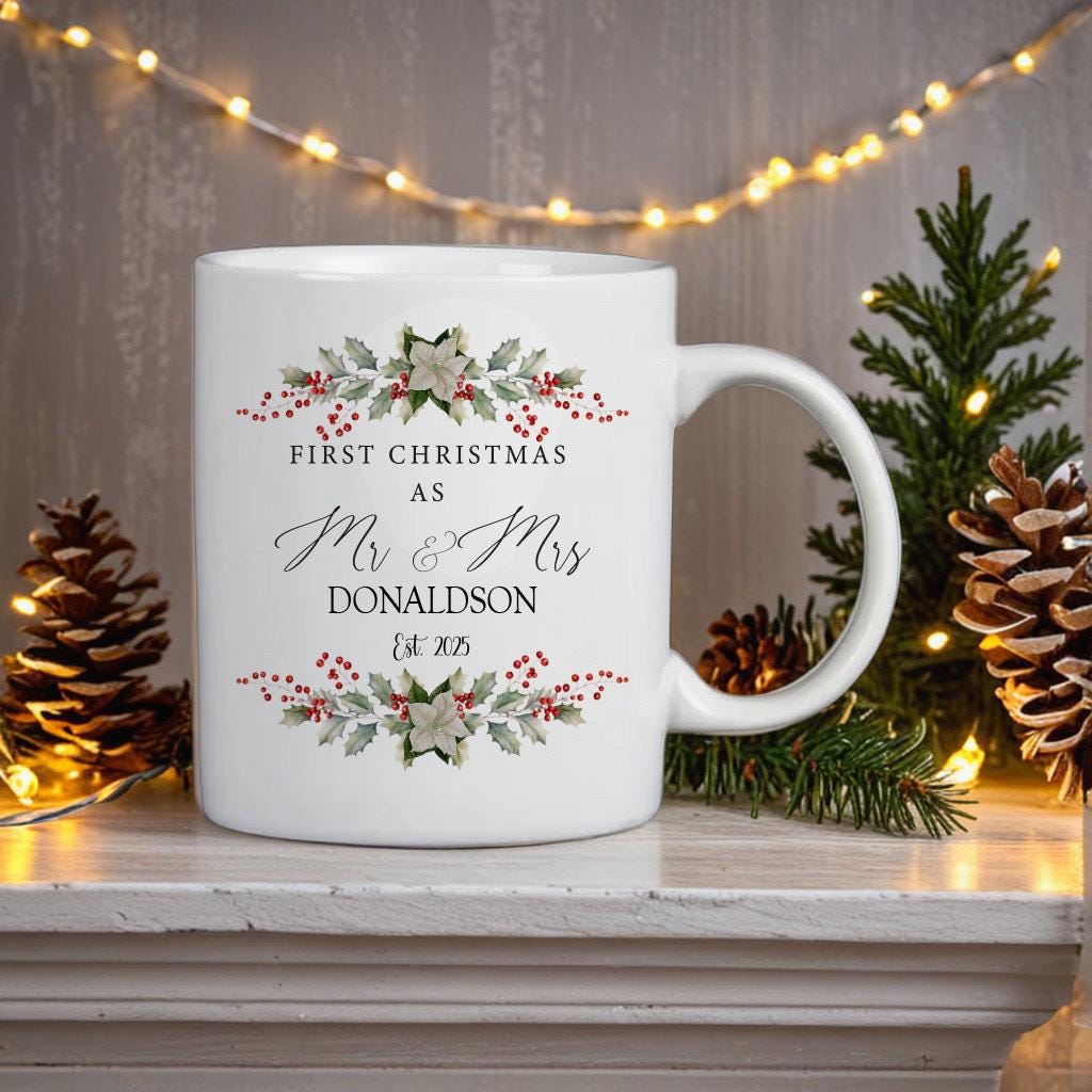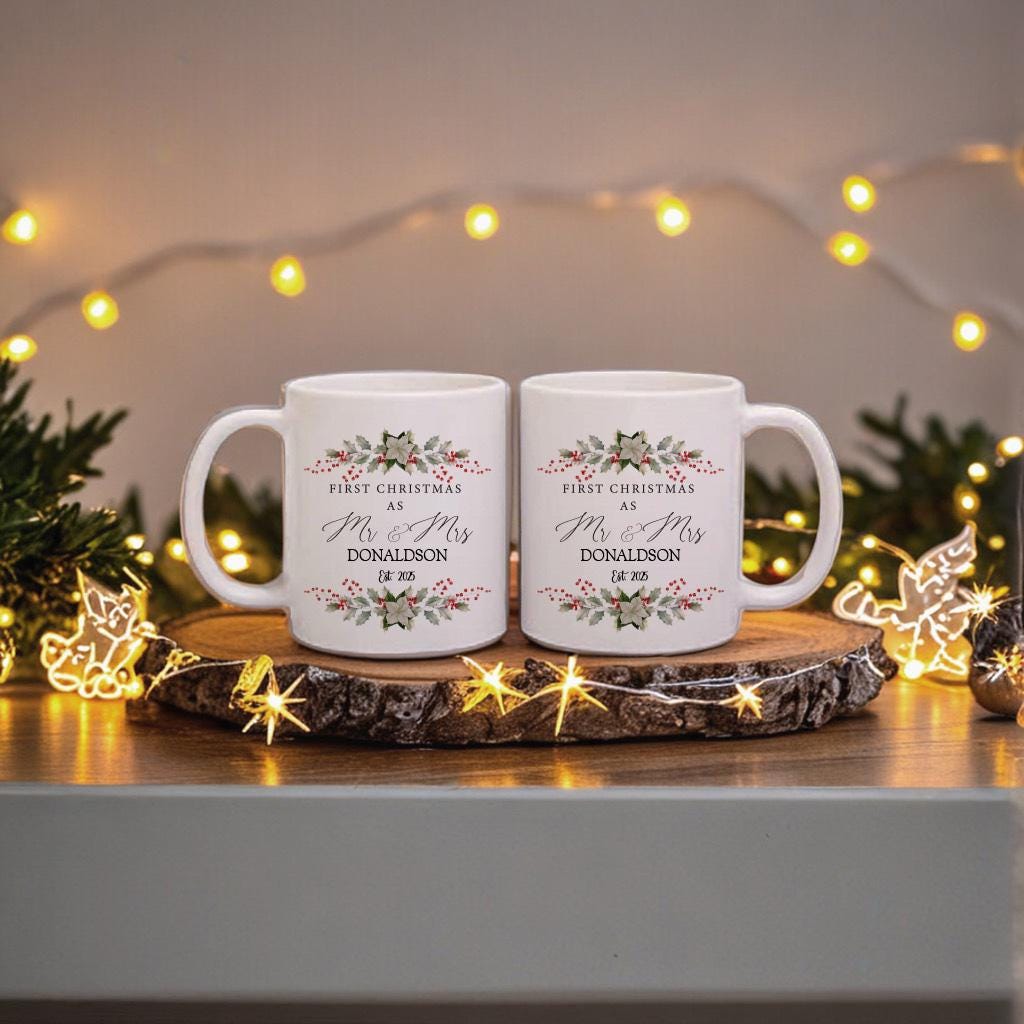 Personalised First Christmas Mr & Mrs Mug Set: Newlywed Couple Gift, 1st christmas, keepsake, home decor, gift for couple, wedding gift
