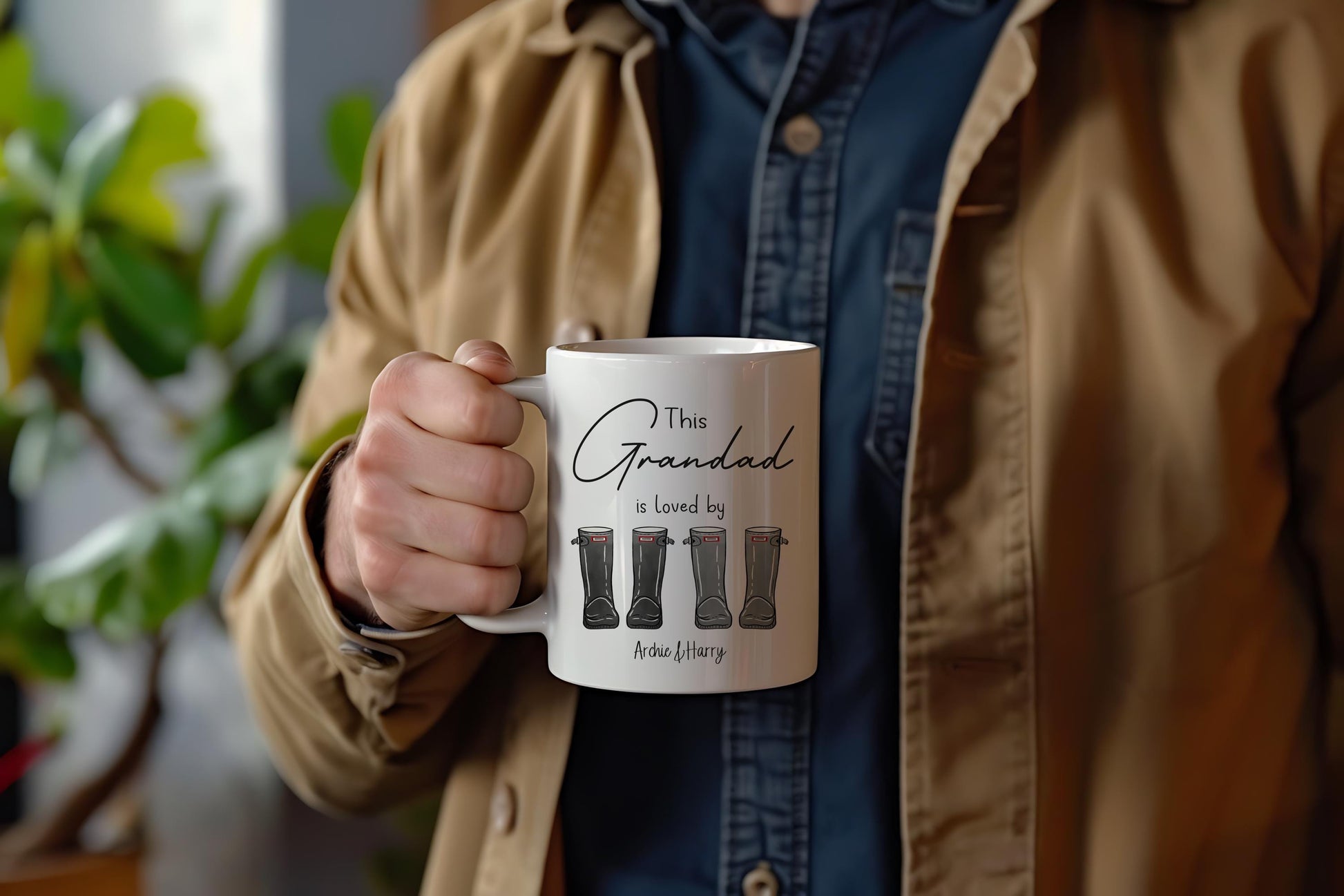 Personalised welly mug, wellington, best dad, daddy loved by, dad belongs to, father gift, gift for grandad, gift for uncle, gift for him