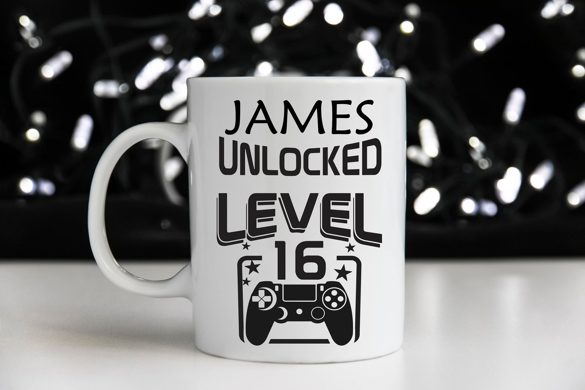 Personalised Gamer Mug: Unlocked Level Birthday Gift, gamer gift, gamer boy, gamer girl